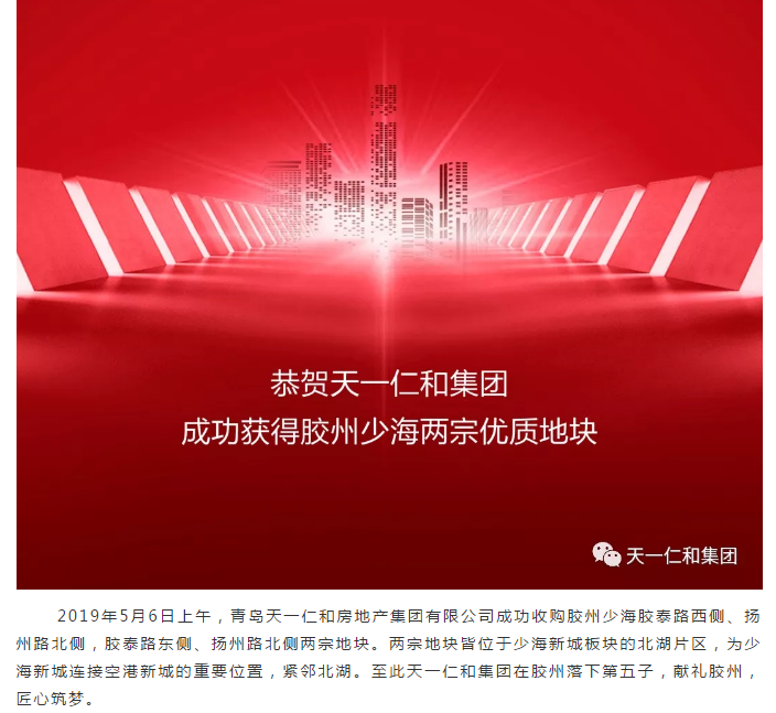 【天一仁和集团】——盛势难挡,再下一城,摘获胶州第五子