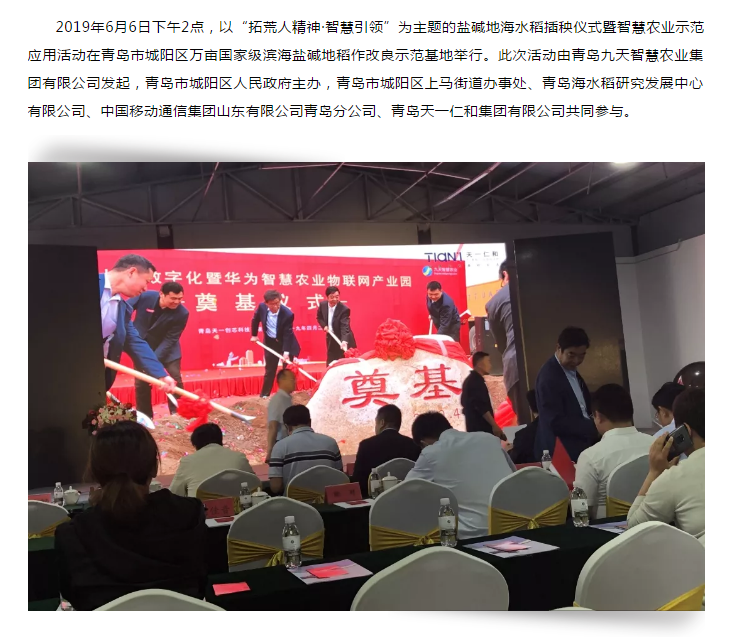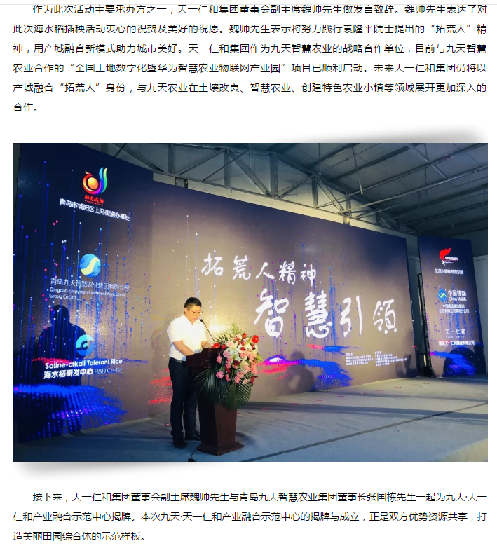 天一仁和集团携手九天智慧农业,开启万亩国家级海水稻示范基地插秧仪式!
