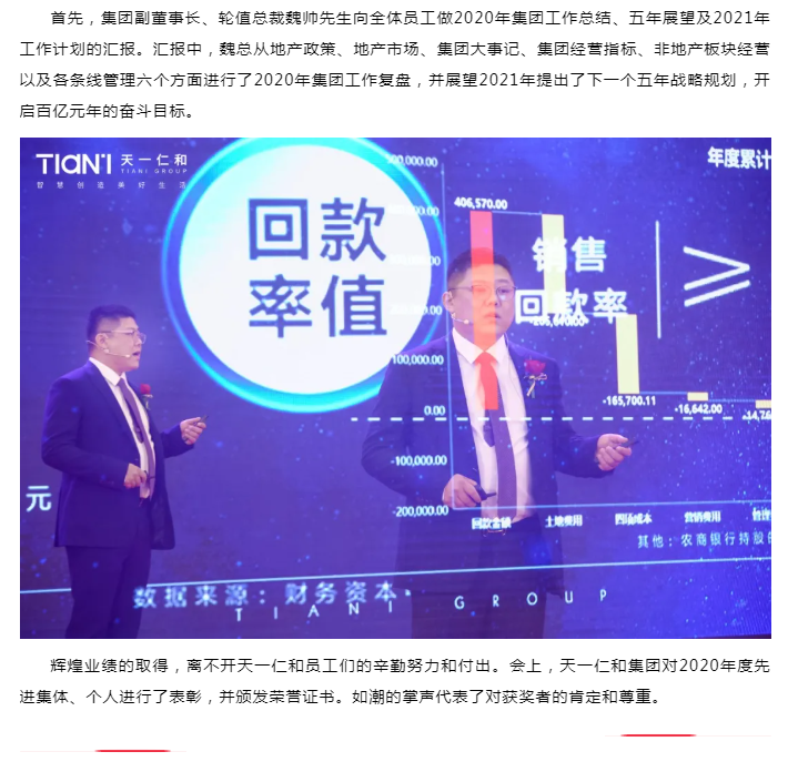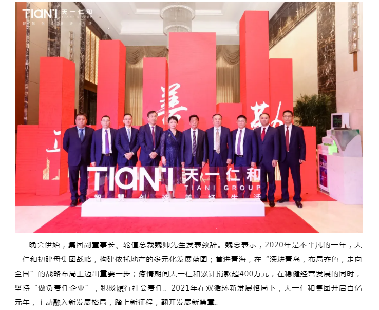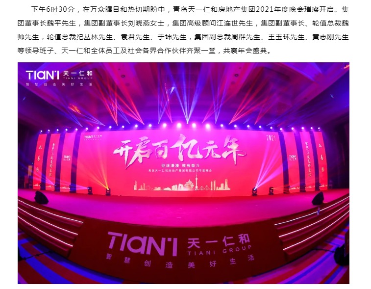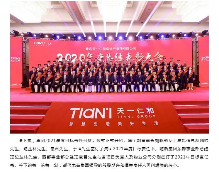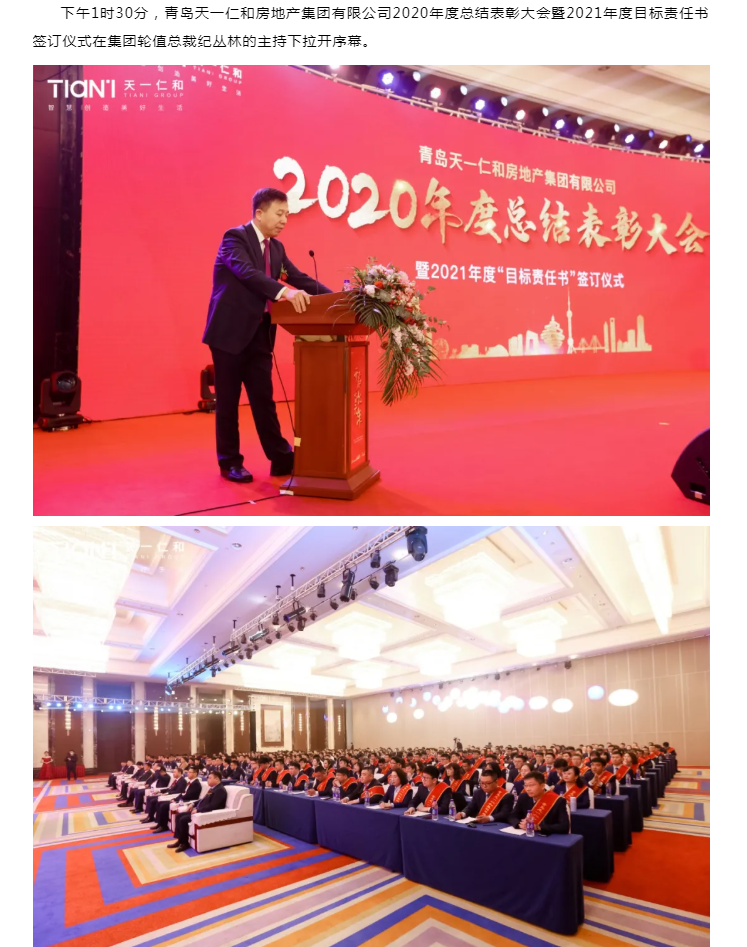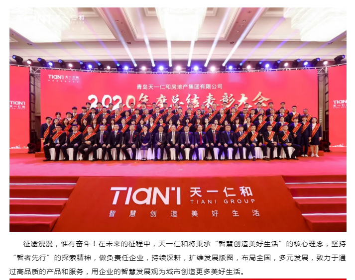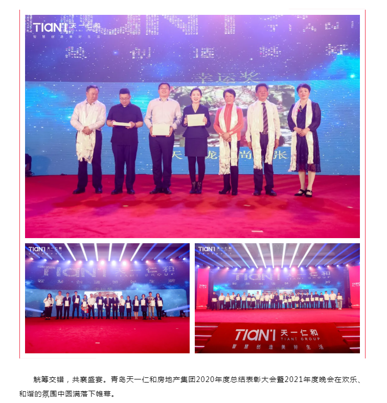 一路追梦,砥砺前行;鲲鹏展翅,携手奋进。2021年03月19日,青岛天一仁和房地产集团有限公司2020年度总结表彰大会暨2021年度晚会隆重举行!