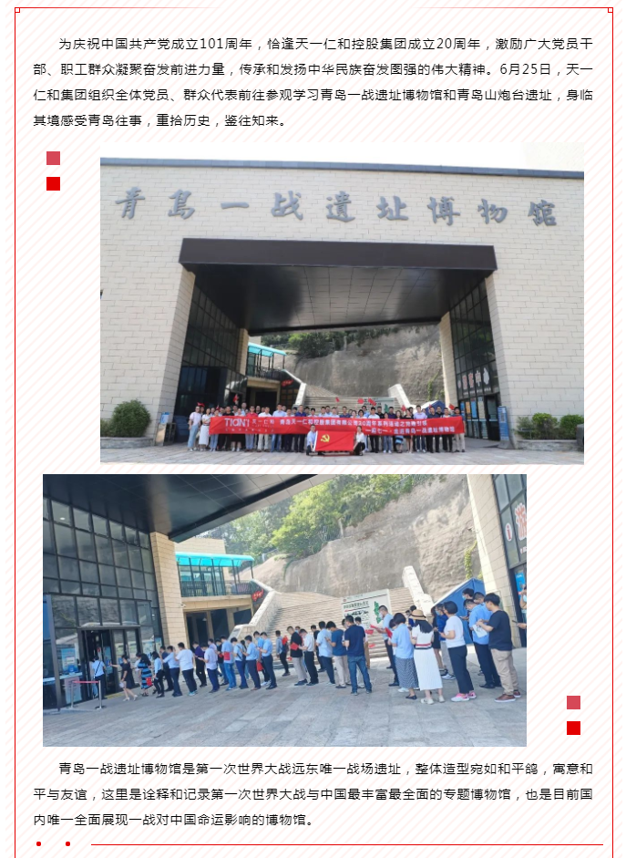 青岛天一仁和控股集团20周年系列活动之党建引领 ——迎七一·走进青岛一战遗址博物馆