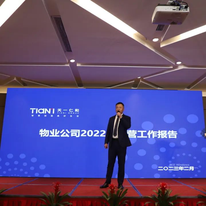 天一仁和物业总经理扈海滨先生从2022年整体经营情况、组织效能、下半年物业公司的战略方向及工作重点等几个方面等做了回顾与反思,阐述了公司2022年度各项重点工作。同时,扈总制定了新的年度工作提升计划与目标,为公司全面高质量发展擎画蓝图。